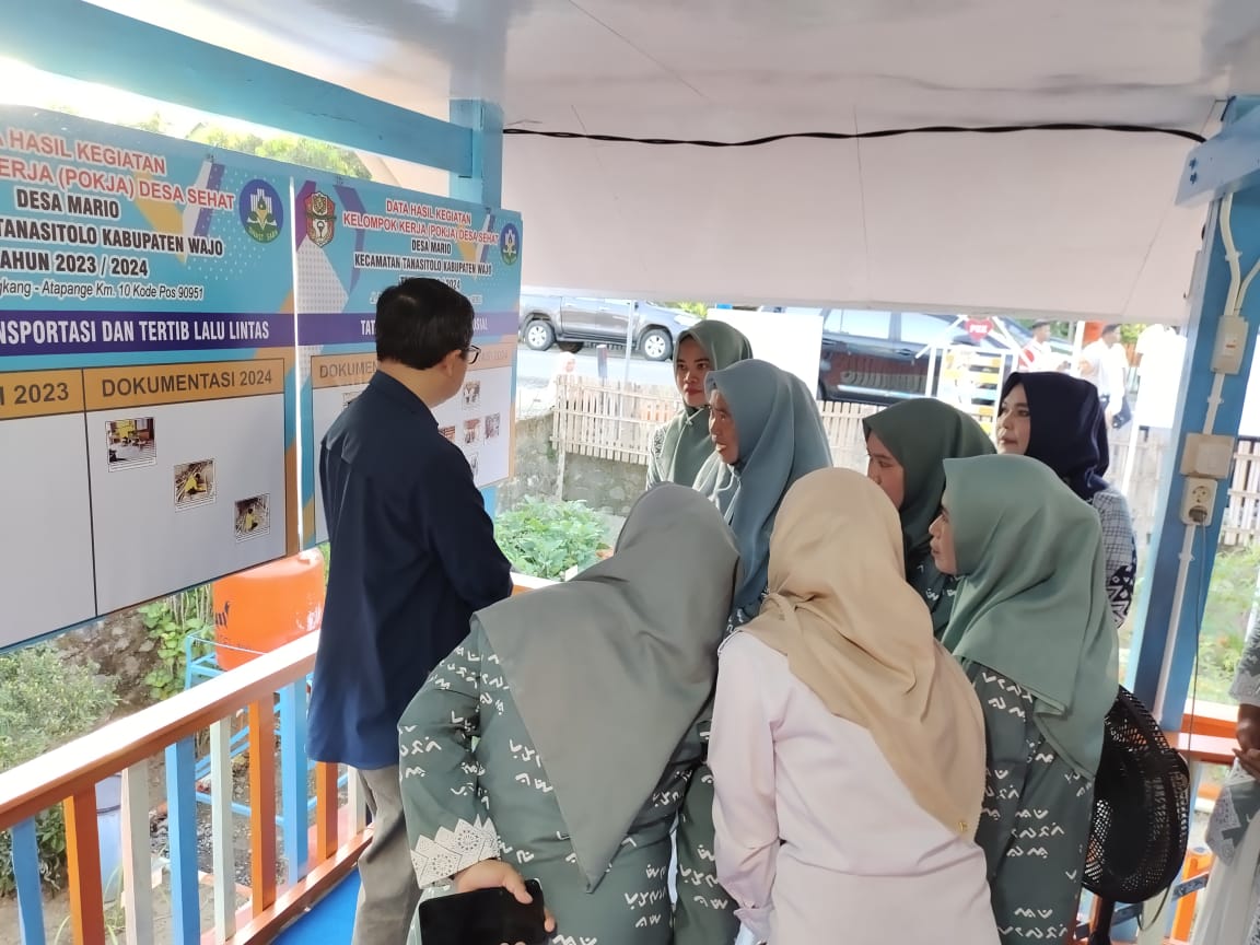 Kunjungan tersebut disambut langsung oleh Kepala Desa Mario, H. La Tejjo, S.E bersama jajaran perangkat desa, pengurus Pokja Desa Sehat, Majelis Taklim Desa Mario, serta Kepala UPTD Puskesmas Wewangrewu Bersama jajarannya. Dalam kesempatan itu, tim validasi melakukan peninjauan langsung terhadap aktivitas dan administrasi Pokja Desa Sehat, termasuk kelengkapan data, program kerja, dan inovasi yang telah dijalankan oleh desa.