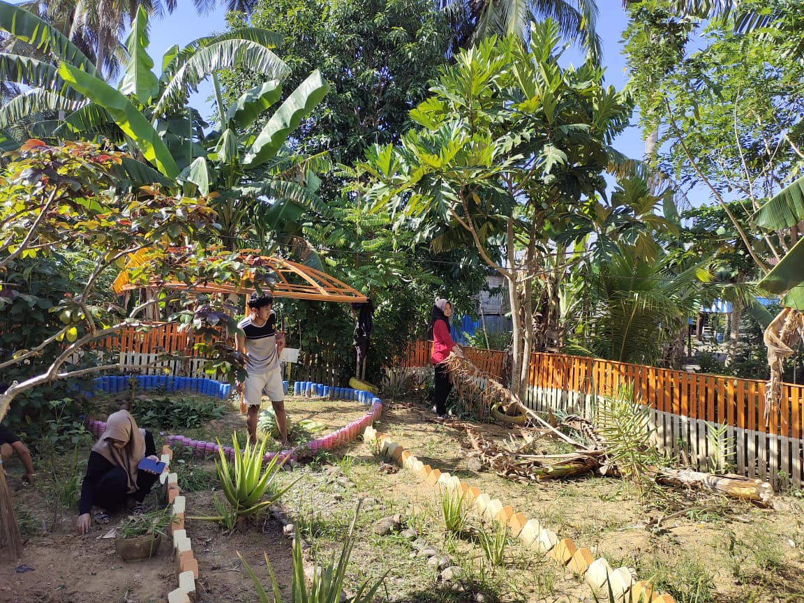 Kegiatan tersebut melibatkan Kepala Desa Mario beserta perangkat desa, mahasiswa KKN, serta masyarakat setempat yang turut berpartisipasi dengan penuh semangat. Adapun rangkaian kegiatan meliputi pembersihan sampah, pemangkasan rumput liar, serta penataan tanaman obat keluarga (TOGA) agar terlihat lebih rapi dan tertata.